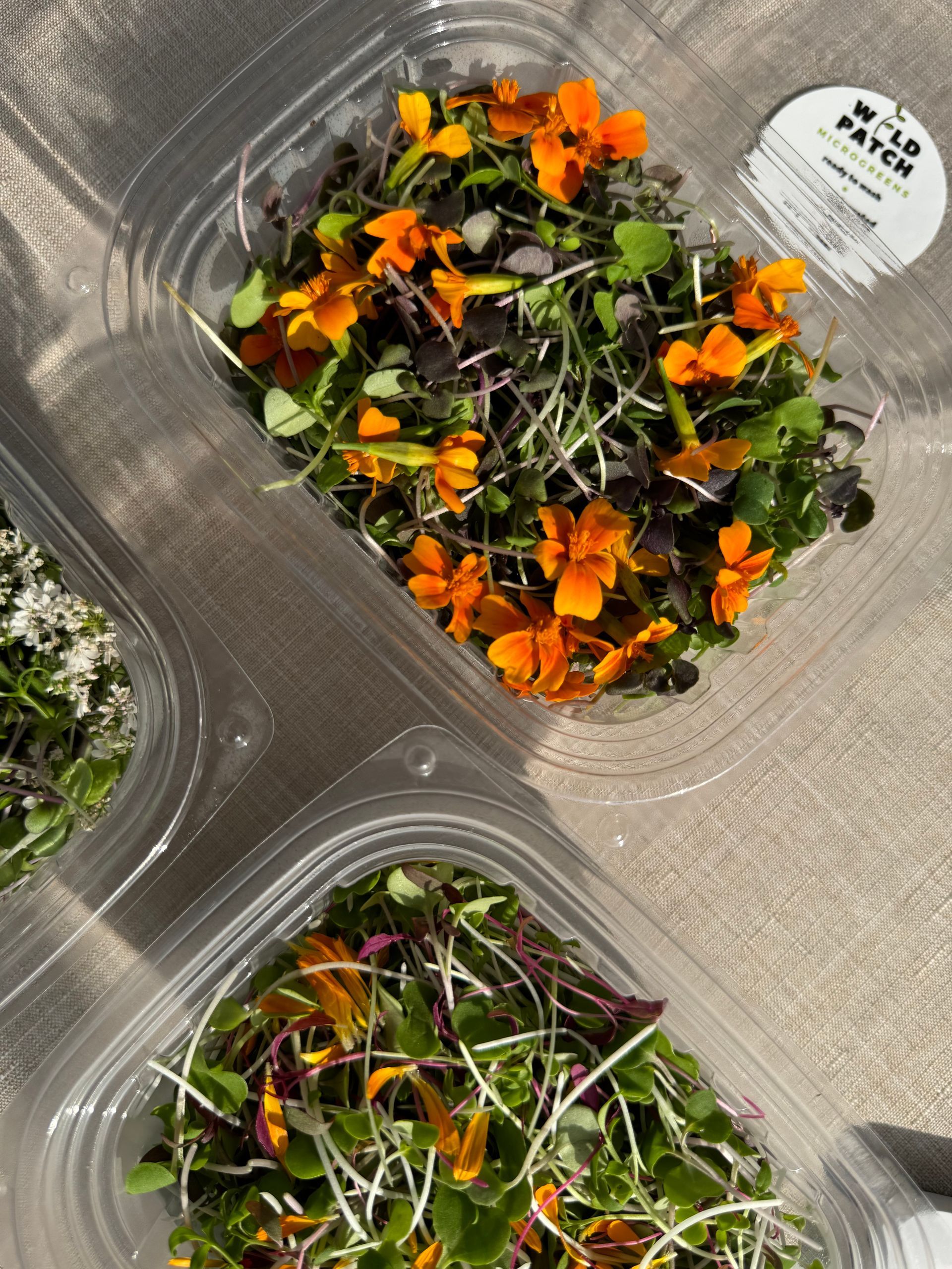 Wild Patch Microgreens started growing microgreens a few years ago but officially launched the business in April of 2022. They grow and sell microgreens, edible flowers, and some baby greens primarily to chefs and restaurants. They also sell to a number of markets and farmers markets locally. Tom and Mary learned about the lack of nutrition in most of the commercially food grown today and wanted to do their part to provide a better option for themselves and others in our local community.